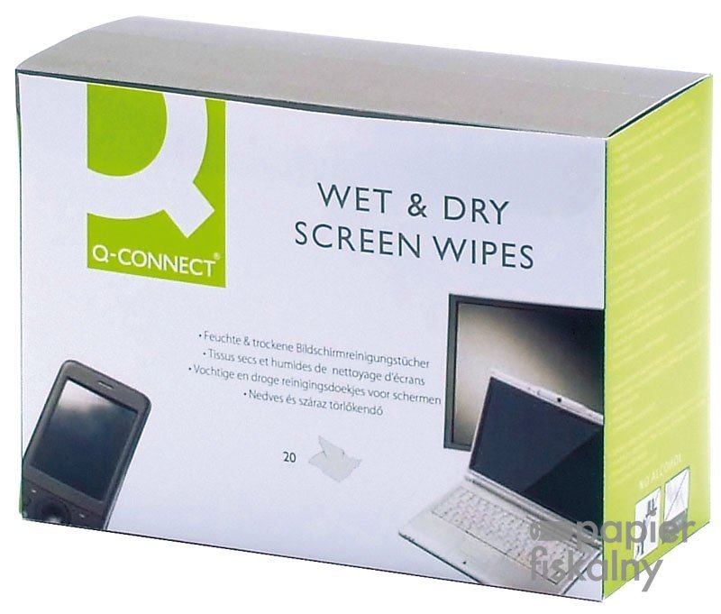 Chusteczki do czyszczenia ekranów TFT/LCD , 2x20szt., typu Q-CONNECT KF32148A