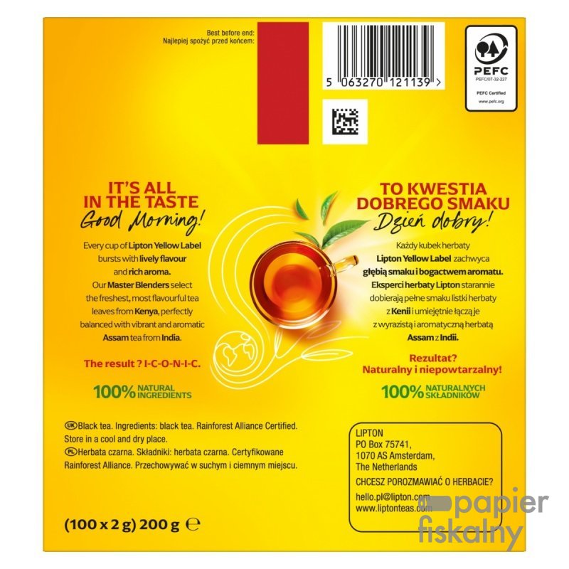 ZAREJESTRUJ SIĘczarna herbata ekspresowa stworzona ze świeżo zbieranych i starannie wyselekcjonowanych młodych listków charakteryzuje się pełnym i bogatym smakiem oraz aromatem w opakowaniu 100 torebek