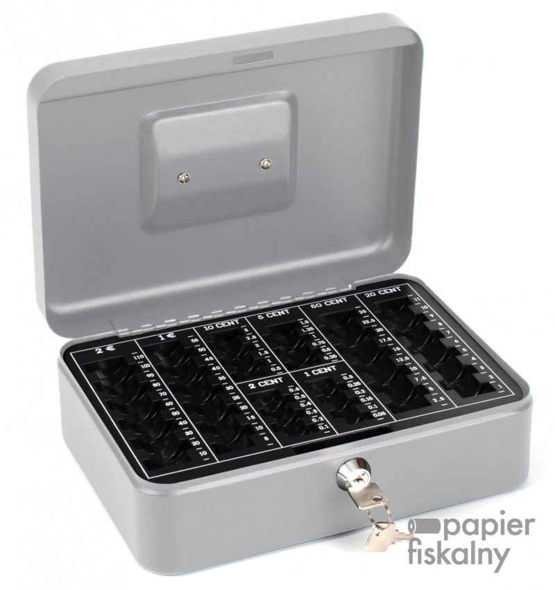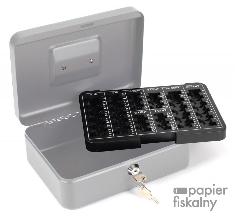 duża kasetka na pieniądze wyprodukowana z lakierowanego proszkowo metalu odpornego na zarysowania
