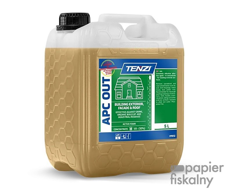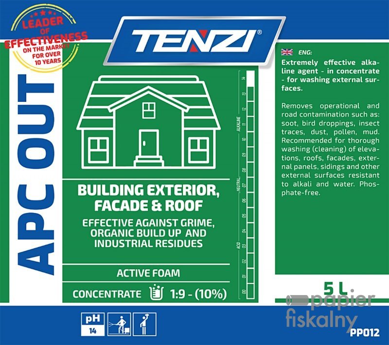 niezwykle wydajny koncentrat do czyszczenia elewacji, dachów, fasad, tarasów, znaków drogowych, barier ochronnych z brudu pochodzenia organicznego, takiego jak rośliny, owady, i zanieczyszczeń ropopochodnych, w tym smary, oleje, chłodziwa