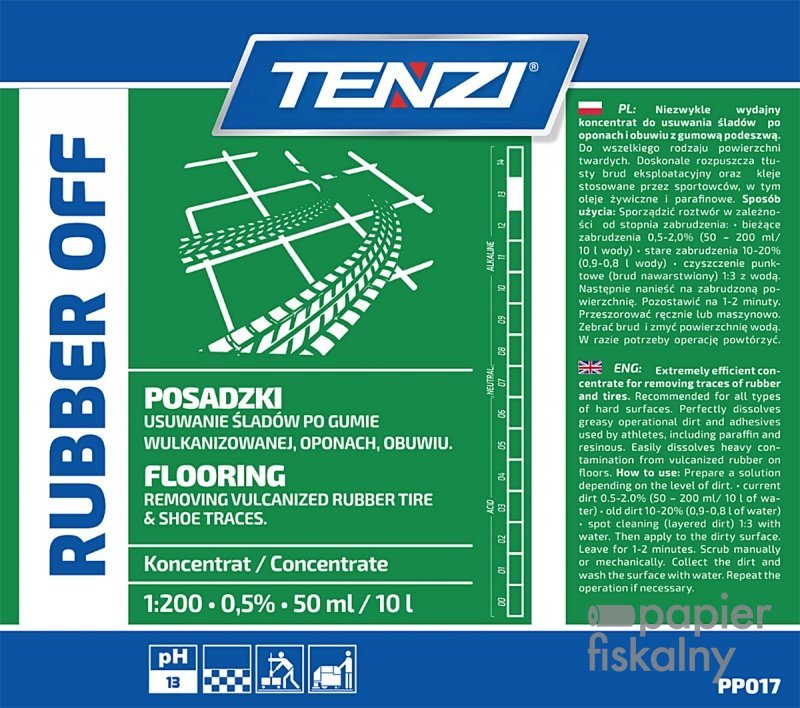 świetnie usuwa ciężkie zanieczyszczenia z wulkanizowanej gumy na posadzkach