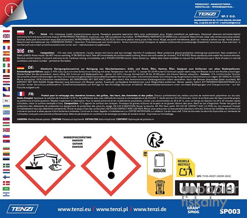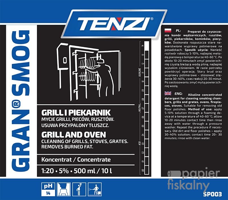 Koncentrat do usuwania tłuszczu, sadzy, smoły TENZI, Gran Smog, 5l