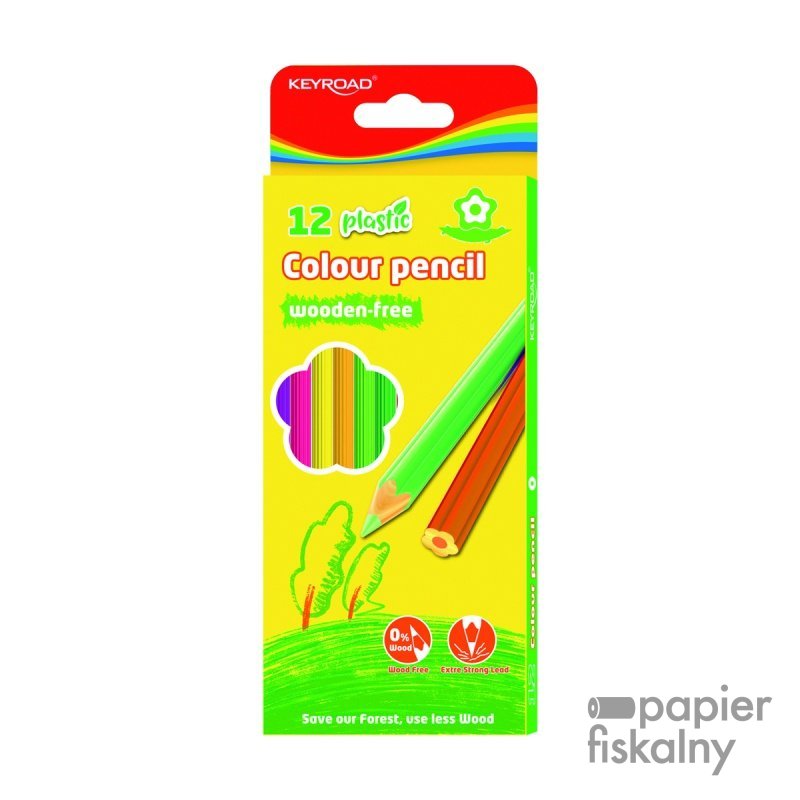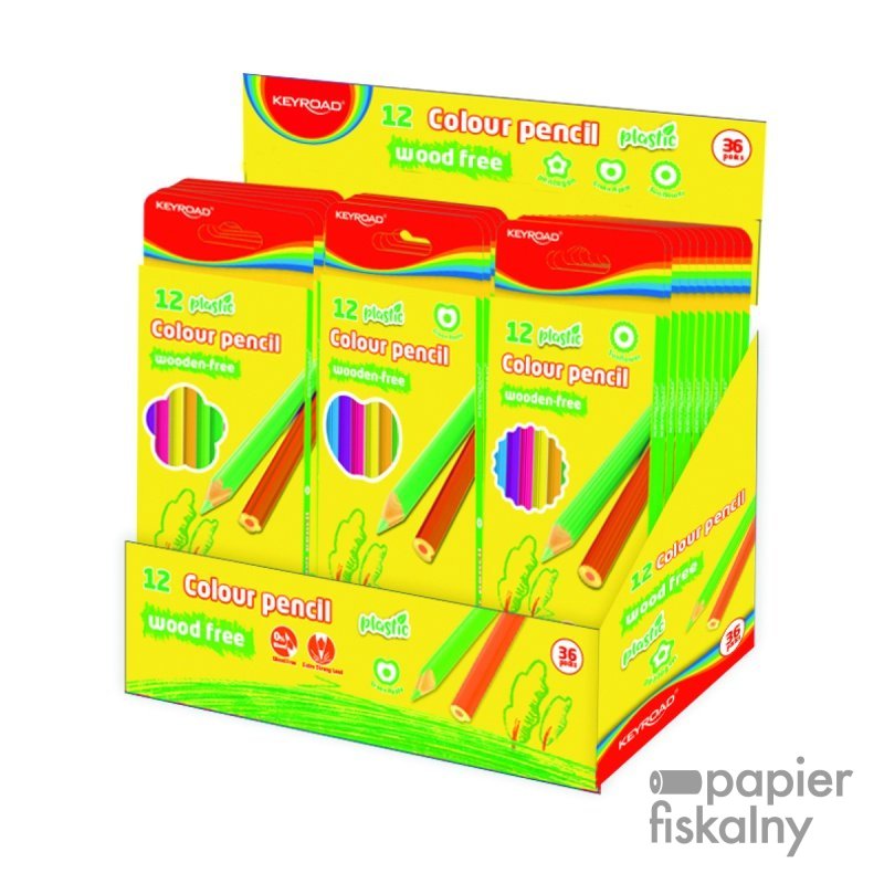 Kredki ołówkowe KEYROAD, bezdrzewne, 12 szt., pudełko zawieszka, display, mix kolorów