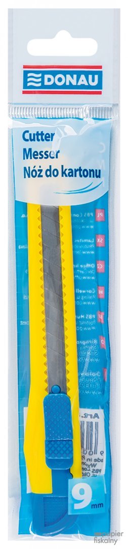 Nóż biurowy DONAU 9mm, plastikowy, z blokadą, niebiesko-żółty