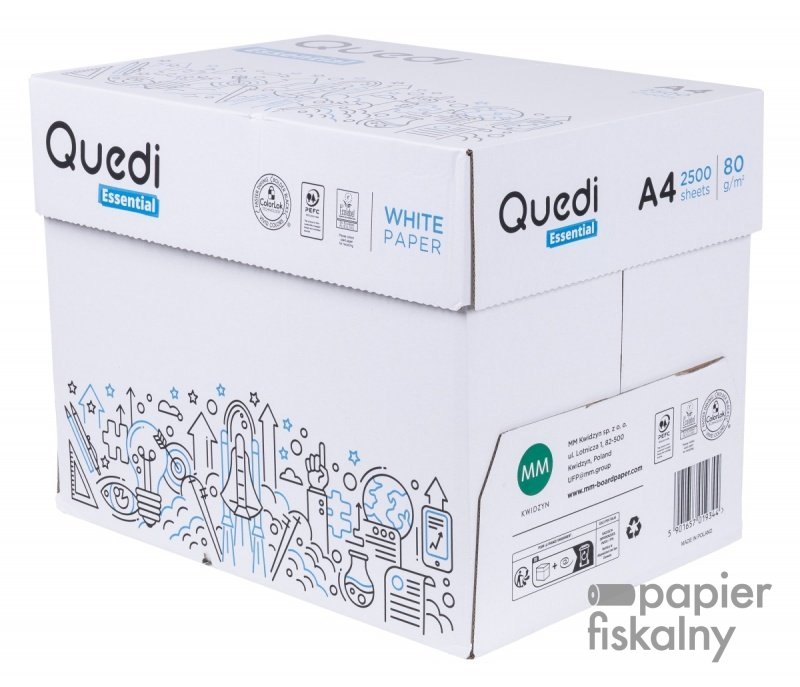 ZAREJESTRUJ SIĘQUEDI ESSENTIAL to uniwersalny papier do kopiowania i codziennego drukowania gwarantujący wydajność i przyjazny dla oka kontrast idealny do wysokonakładowych wydruków czarno-białych pakowany w przyjazne dla środowiska, wolne od plastiku opakowanie zoptymalizowana sztywność papieru zapewnia niezawodne działanie drukarki doskonałe działanie w kopiarkach i drukarkach laserowych oraz atramentowych posiada EU Ecolabel oraz certyfikaty: FSC, PEFC, ISO 9001/ISO 14001/ISO 45001/ISO 50001 klasa: C format: A4 wymiary: 210x297 gramatura (EN ISO 536): 80gsm (+-3) wilgotność (EN ISO 287): 3,5-5,0% grubość (ISO 534): 104μm (+-4) białość (ISO 11475): 146CIE (+-3) nieprzeźroczystość (ISO 2471): 93% (+2-1) gładkość (ISO 8791-2): 220 ml/min (+-60) kolor: biały 500 arkuszy w j.s.