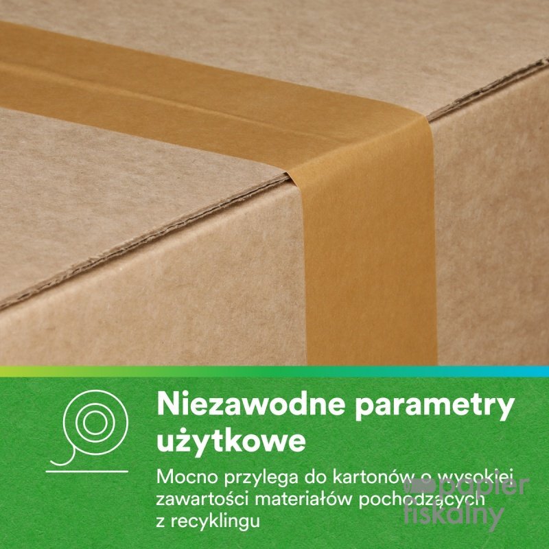 mocno przylega do różnych powierzchni, w tym kartonów zawierających dużą ilość materiałów pochodzących z recyklingu