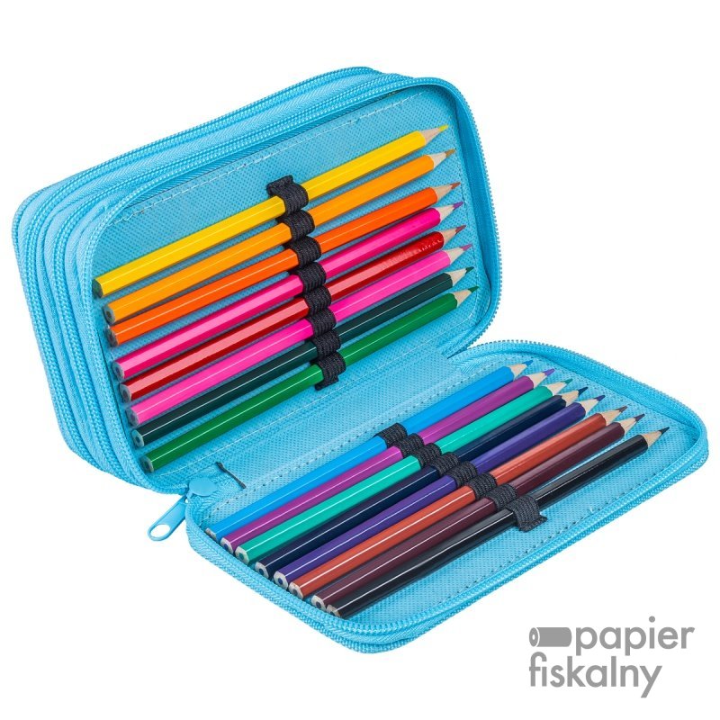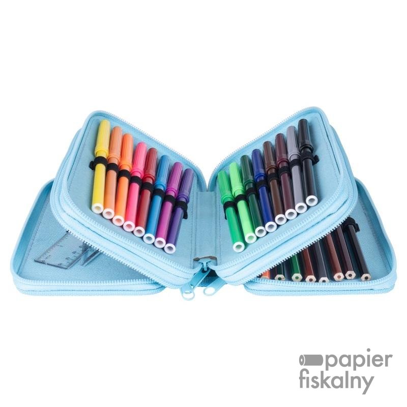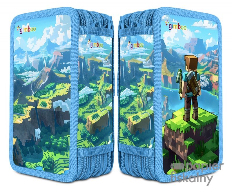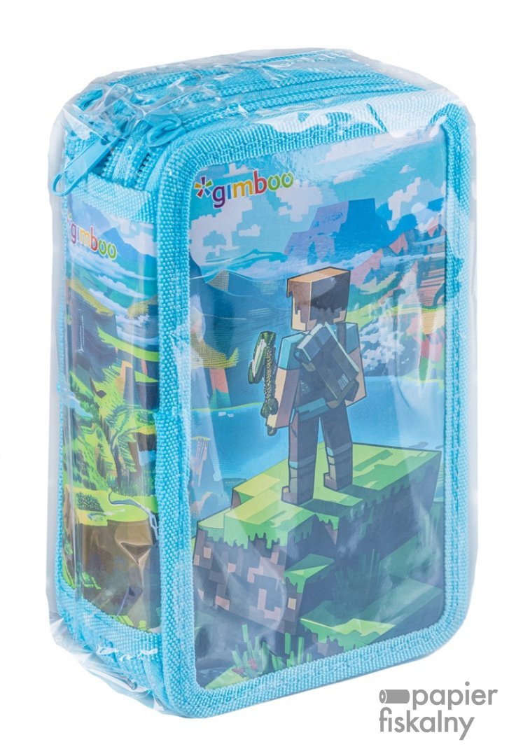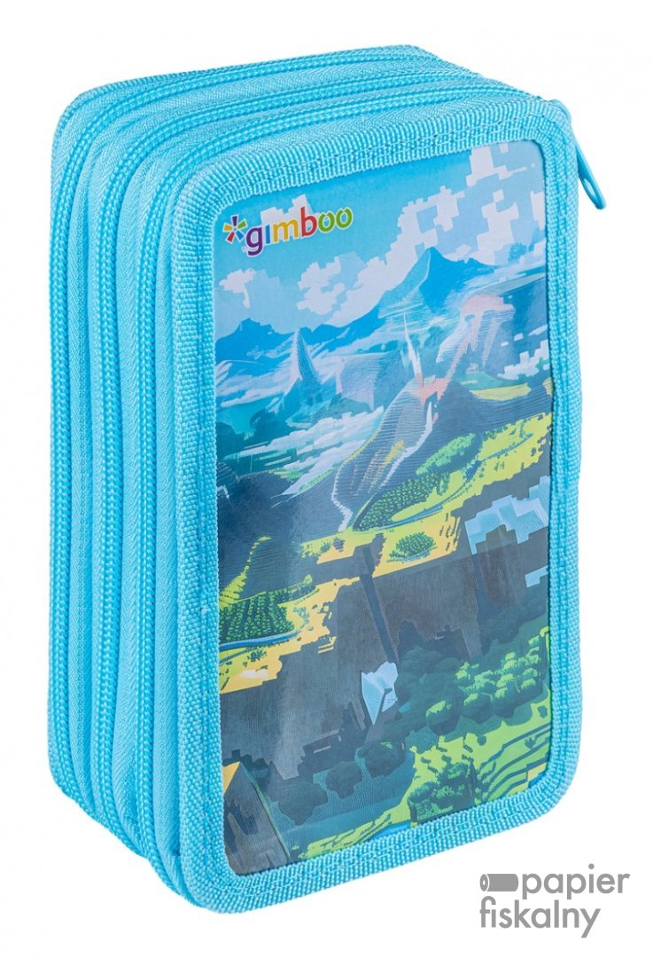 Piórnik szkolny GIMBOO, z wyposażeniem, 3 komory, Klocki 2025, niebieski