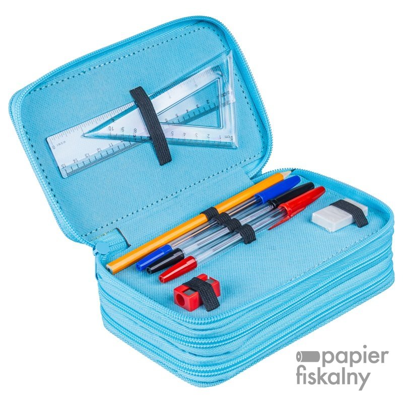 zestaw zawiera wyposażenie (linijkę, ekierkę, 3 szt. długopisów, ołówek, gumkę, temperówkę,... Zobacz więcej