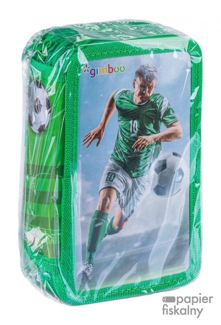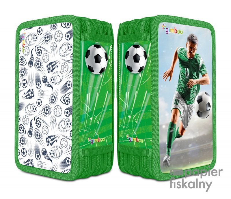 Piórnik szkolny GIMBOO, z wyposażeniem, 3 komory, piłka nożna, zielony