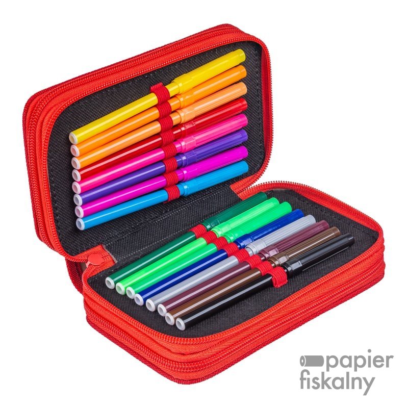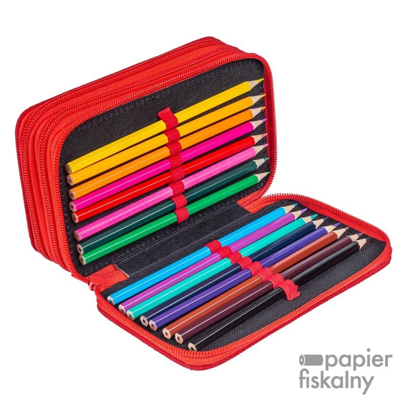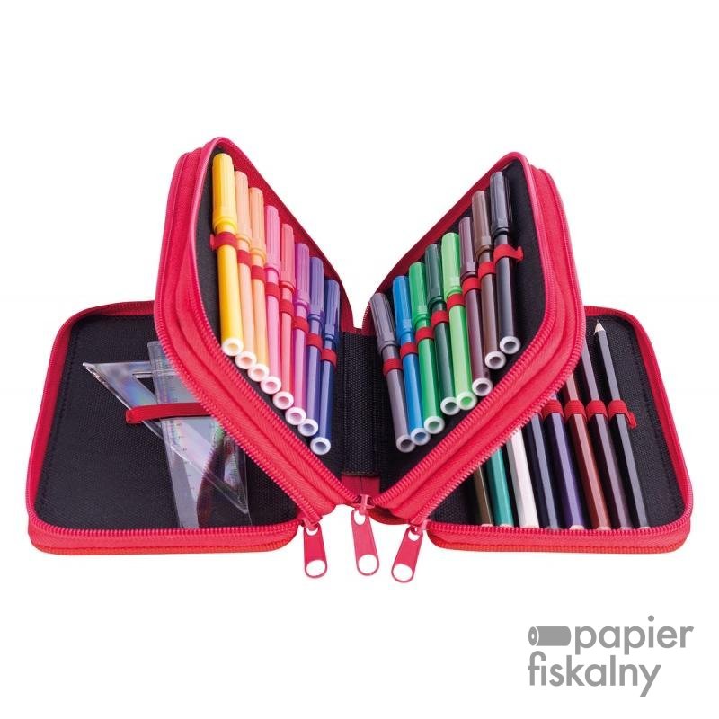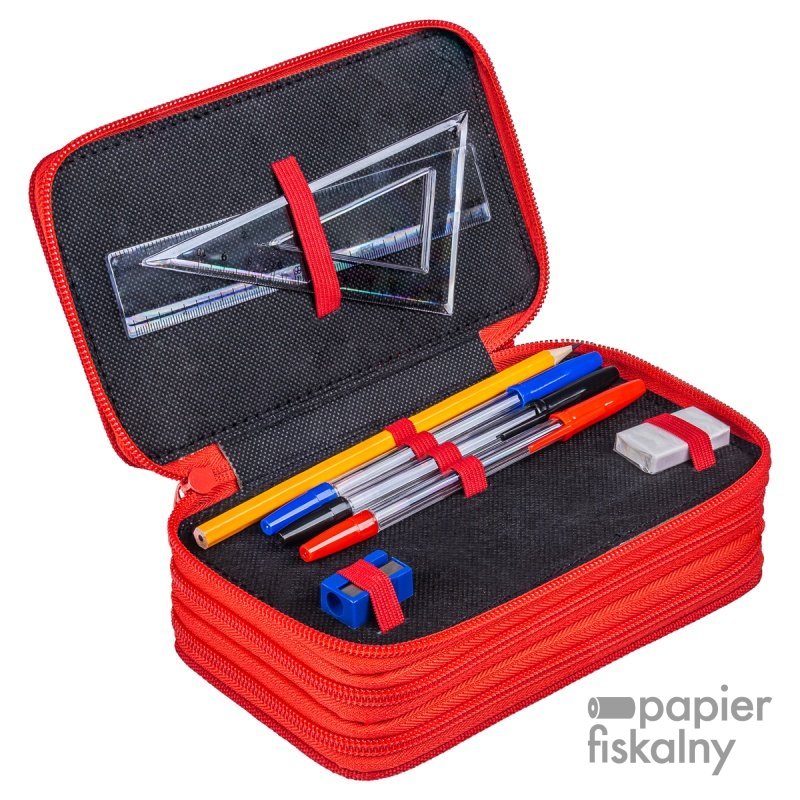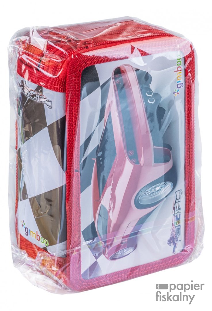 Piórnik szkolny GIMBOO, z wyposażeniem, 3 komory, wyścigi, czerwony