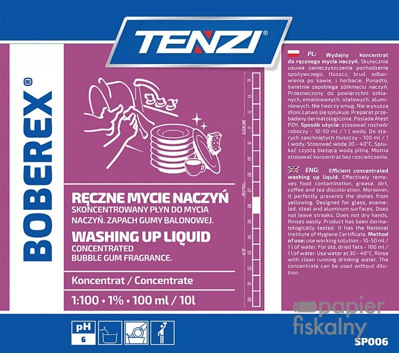 Płyn do mycia naczyń TENZI, zapach gumy balonowej, Boberex, 5l