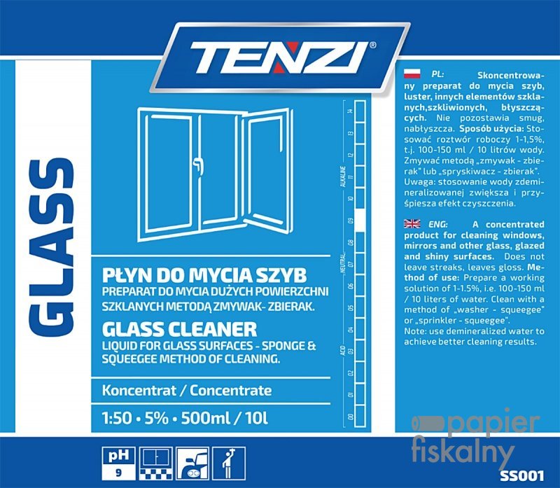 wydajny, skoncentrowany preparat do mycia szyb, luster, ram okiennych, plastiku oraz wszelkich elementów szklanych i szkliwionych
