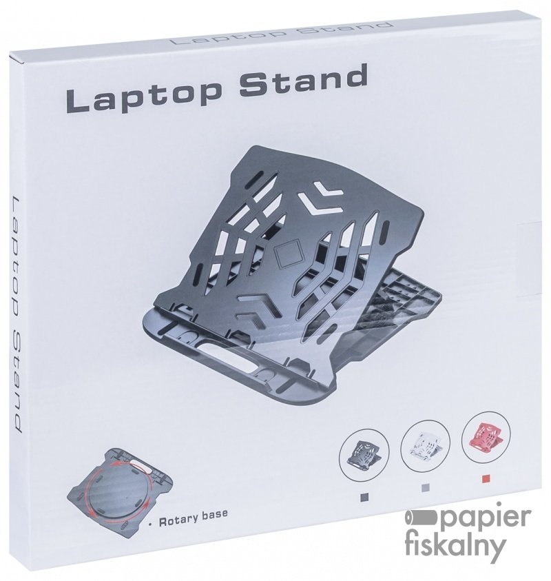 ZAREJESTRUJ SIĘLekka, plastikowa podstawka na laptopa z podstawą obrotową praktyczne rozwiązanie podnoszące komfort pracy na laptopie zapobiega bólom karku i szyi wywołanym pracą przy laptopie przeznaczona dla osób pracujących długo przed laptopem dobra wentylacja zapobiega przegrzewaniu się komputera wymiary: 25,5 x 1,8 x 28 cm waga: 0,53 kg kolor: czarny