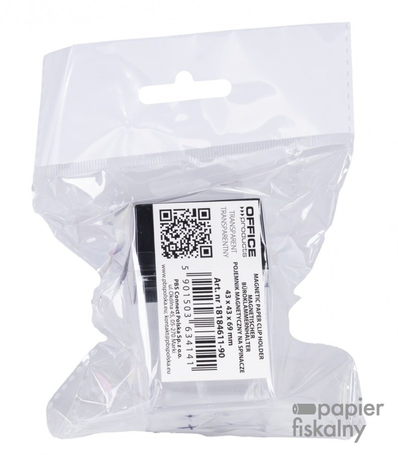 Pojemnik magnetyczny na spinacze OFFICE PRODUCTS, prostokątny, pusty, transparentny