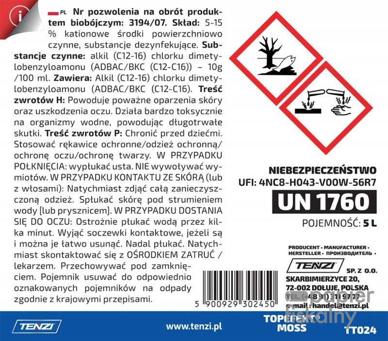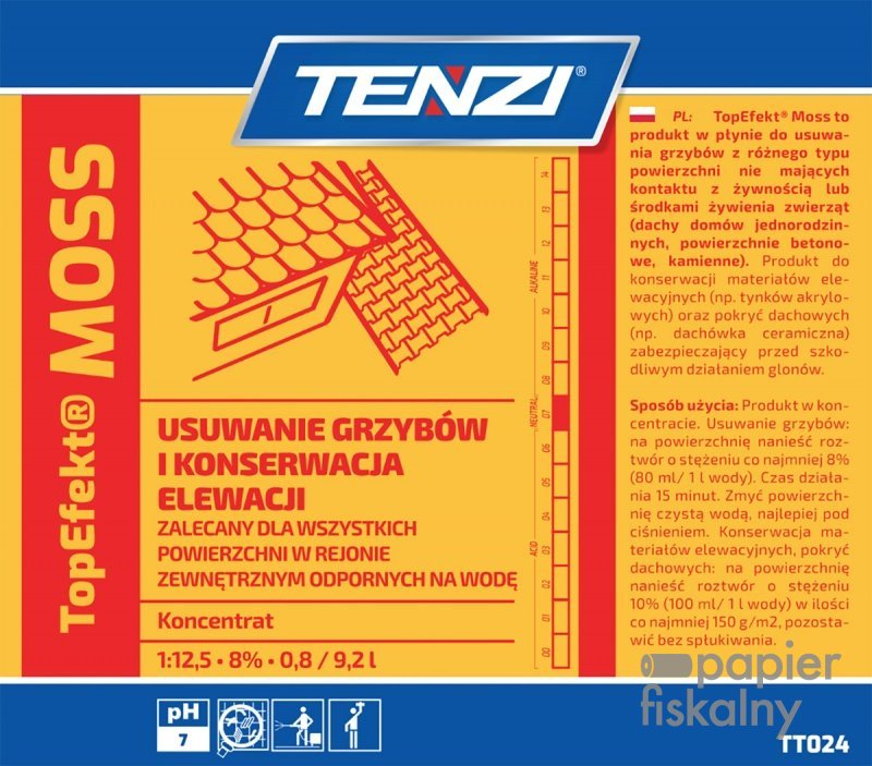 specjalistyczny preparat do efektywnego usuwania grzybów oraz niszczenia mchów i glonów, a także niektórych porostów z różnego typu powierzchni, takich jak elewacje, dachy domów jednorodzinnych
