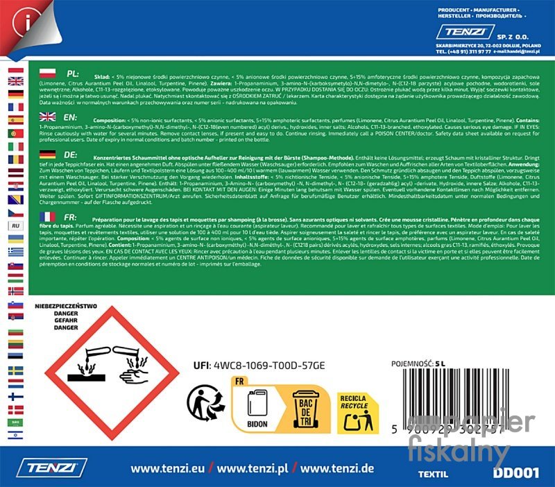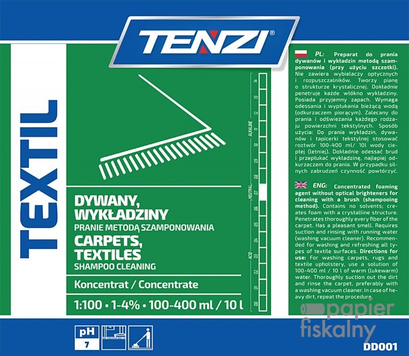 Preparat do prania wykładzin i tekstyliów metodą szamponowania TENZI, Textil, 5l