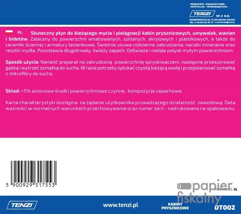 Środek do czyszczenia kabin prysznicowych TENZI, 5l