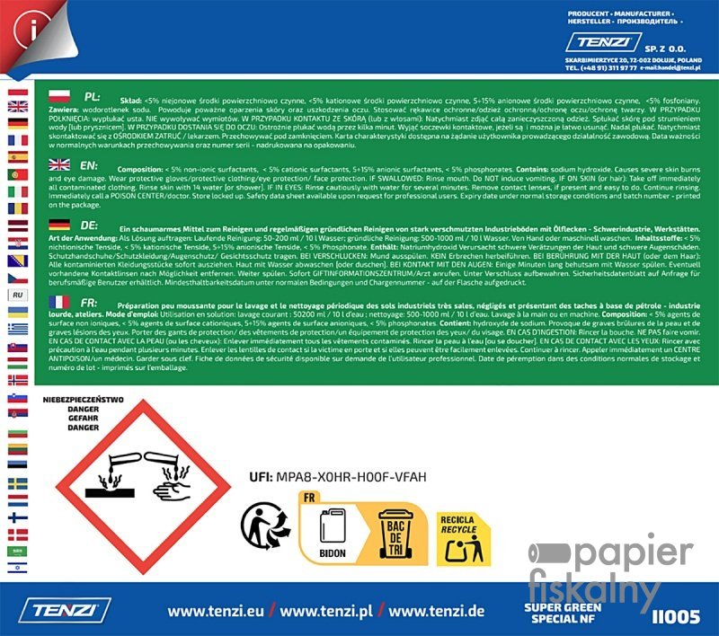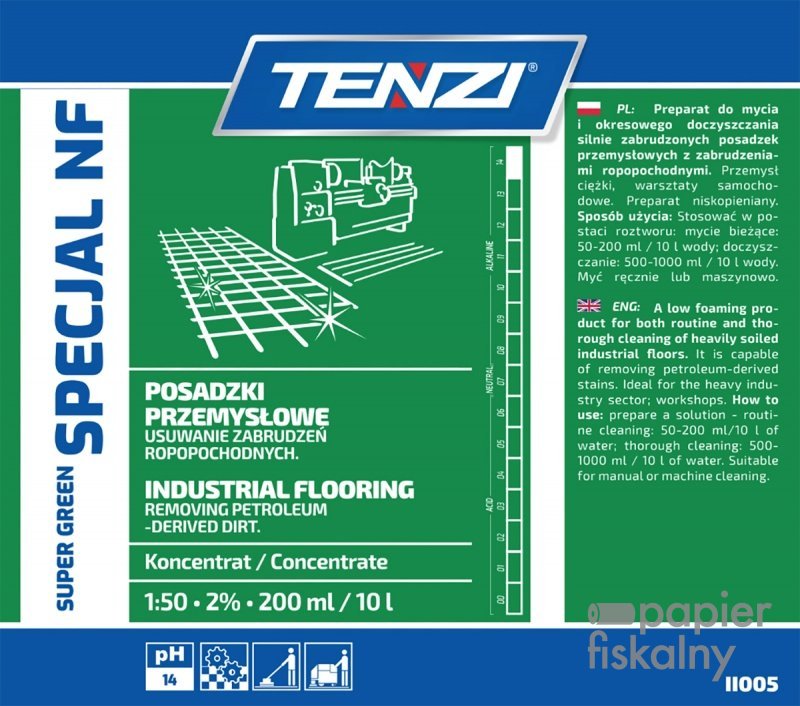 zalecany do mycia silnie zanieczyszczonych posadzek przemysłowych z zabrudzeniami ropopochodnymi