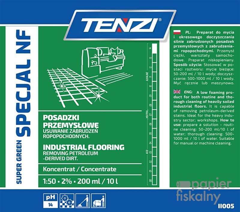 zalecany do mycia silnie zanieczyszczonych posadzek przemysłowych z zabrudzeniami ropopochodnymi