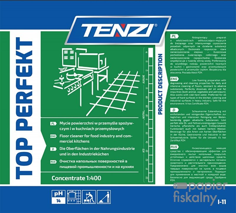 Środek odtłuszczająco-myjący do powierzchni twardych TENZI, Top Perfekt, atest PZH, 5l