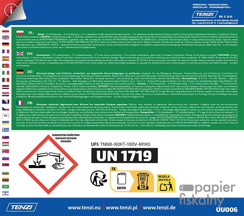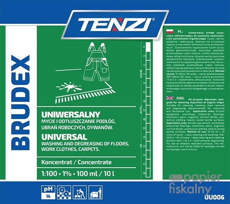 Uniwersalny płyn odtłuszczający do usuwania plam TENZI, Brudex, 5l