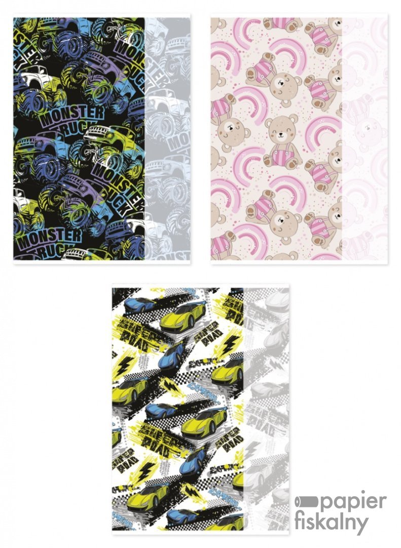zeszyt w trzy linie z laminowaną, miękką okładką